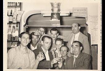 La foto de 1958. Mi padre y unos amigos en el Bar Contreras. El bar sigue existiendo en las Casillas. En él y con la puerta yo pelaba arenques, se metía entre el cerco y se cerraba la puerta para presionarlo.En mi pueblo donde nací, en la Sierra de Madrid, hacía un frío que pelaba. Nevaba todos los inviernos y los chiquillos hacíamos carreteras y caminos en la nieve para jugar. Algunos años hacíamos túneles, como en la gran nevada del 56 creo que fue. ¿O 52?, recuerdo que nevó hasta en Marbella. El frio te llenaba de sabañones unos meses, en las orejas y en los pies, que picaban como diablos. Ningún niño perdía la oportunidad de jugar con nieve, o con agua, haciendo pozas para sujetar aquellas riadas que caían desde el monte por las empinadas calles del pueblo.