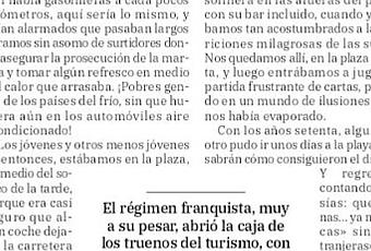 Eran los años sesenta y setenta, aún de “pertinaz sequía”, en que el régimen franquista, muy a su pesar, abrió la caja de los truenos del turismo, con sus pecaminosas osadías, pero con las divisas que nos eran tan urgentemente necesarias. Luego nos haríamos mayores, pero en la estela del tiempo quedó humeando el recuerdo de “las suecas”, y un poco menos el de “las extranjeras”, que conformaron nuestro machismo rancio, del que no sé si nos hemos librado todavía.