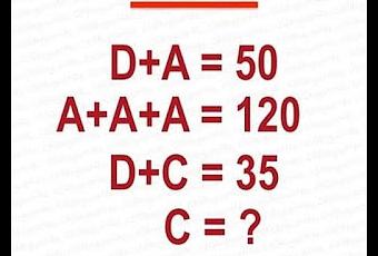 (ExplicaciĂłn: 3A=120 → A=40; D+40=50 → D=10; 10+C=35 → C=25)