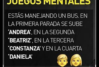 EstĂĄs manejando un bus.En la primera parada se sube"Andrea ", en la segunda " Beatriz", en la tercera "Constanza" y en la cuarta "Daniela".