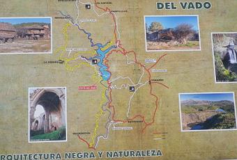Las Administraciones están haciendo esfuerzos, aún incipientes (queda mucho por hacer) para proporcionar información atractiva a los potenciales visitantes de la Sierra Norte de Guadalajara. Este cartel situado al final de la presa de El Vado es solo una muestra, aunque solo sirva para situar al viajero en el entorno.