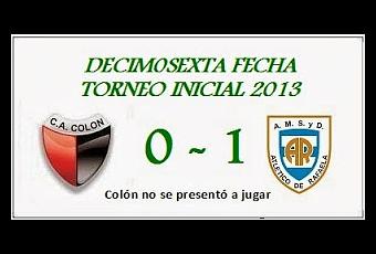 1º) SANCIONAR al CLUB ATLETICO COLON DE SANTA FE con la pérdida del partido del 18 de noviembre de 2013 suspendido por el árbitro, y dar por ganado el mismo a la ASOCIACION MUTUAL, SOCIAL Y DEPORTIVA ATLETICO RAFAELA.