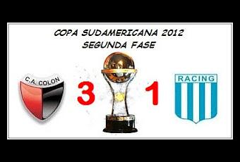 Colón:3 - Racing:1 (2° Fase - Ida)Colón comenzó su quinta experiencia internacional, venciendo a Racing, en un show de golazos. Fue 3 a 1 por la Copa Sudamericana; Mugni, Curuchet y Graciani anotaron para los locales, mientras que Hauche había establecido el transitorio 1 a 1; todas las definiciones fueron de alta calidad.