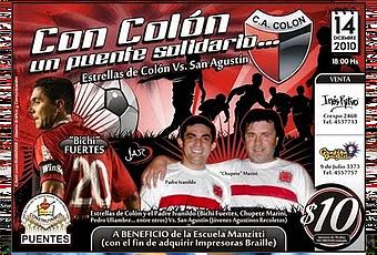 Nos llega un parte de prensa, donde se ha hace mención de un partido a beneficio de la escuela ESPECIAL Nº 2075 “DR. EDGARDO MANZITTI”. Organizado por los jóvenes de la parroquia Agustinos Recoletos (JAR) a través del Ministerio de Acción Social (MAS) y el Padre Ivanildo Sales Chávez, se llevará a cabo el próximo martes 14/12, desde las 18 hs.El mismo se realizará en el Club Atlético Colón y el valor de la entrada es de $10; la apertura del estadio está prevista desde las 17 hs.