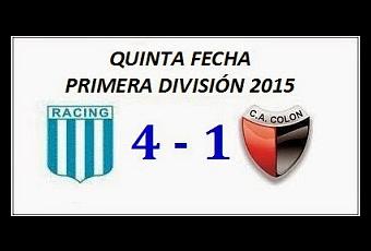 78) Primera División 2015: Racing Club 4 vs. Colón 1 (Facundo Andrés Castillón, Óscar David Romero Villamayor –p-, Carlos Rodrigo Núñez Techera y Washington Fernando Camacho Martínez // Raúl Oscar Becerra).