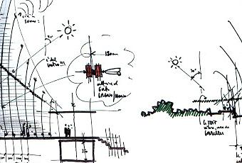 Una selección casi azarosa de los croquis que acompañan las publicaciones del Renzo Piano Building Workshop, dibujos que intentan repasar los bocetos de las primeras ideas, de la toma de decisiones principales, construyendo en pocas líneas diagramas sencillos y muy pedagógicos sobre el proceso de diseño y la articulación de los elementos constructivos.