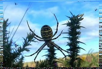 Araña tigre (Argiope bruennichi)Otras características distinguen a esta especie, como la de que construye su tela a poca altura sobre el suelo, o que su tela en el centro posee una "firma" en zig-zag, muy característica, que contribuye a estabilizarla, como se puede apreciar en esta foto.
