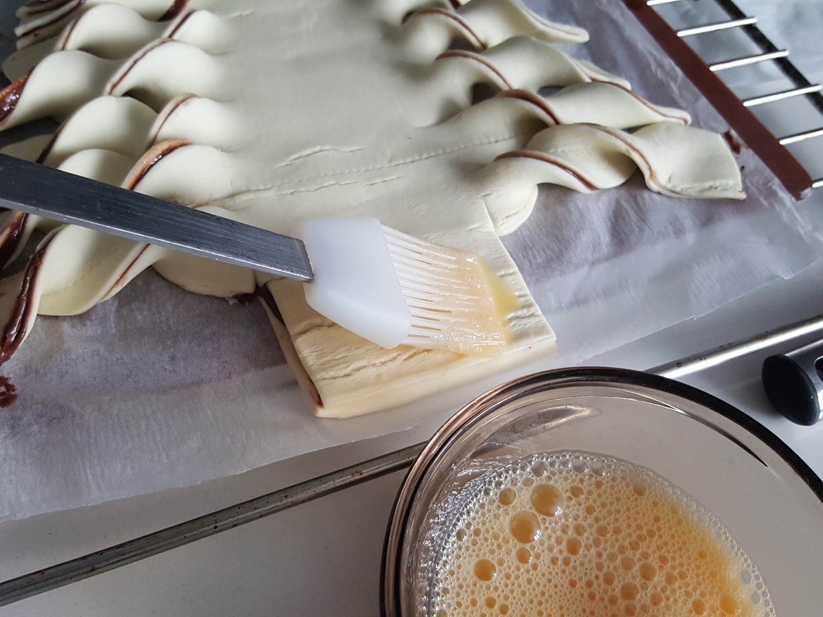 2 planchas de hojaldre crema de cacao1 huevoazúcar glas (opcional)