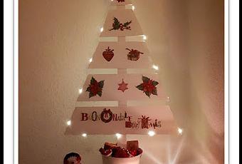 Sigo con los adornos navideños. Lo terminé hace unos días pero no había tenido tiempo de subirlo.Hoy os enseño un árbol de navidad que he hecho desde cero, tenia un tablón de contrachapado guardado (lo guardo todo) y lo corté con sierra en forma de árbol, imprimación, pintura blanca y decoupage con unas servilletas navideñas.