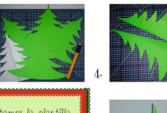 Cuando tengáis recortado el árbol, tenéis que dibujarlo cuatro veces en una cartulina del mismo color, o en cartulinas diferentes, como más os guste.