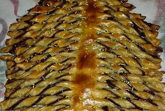 Preparación:Ponemos una lámina de hojaldre encima de papel de horno y untamos de nocilla todo el hojaldre. Colocamos encima otra lámina de hojaldre.