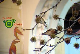 Salimos del céntrico metro de Ópera, en Madrid. En estas fechas, la gran mayoría de las personas enfila la calle Arenal arriba, en busca de los templos del consumo navideño. Raro escapar al aluvión de luces, música y fraternidad navideña sin gastar un euro. Aver Aves decide emprender el camino en sentido contrario, hacia la plaza de Oriente. Queremos disfrutar de la compañía de nuestras amigas las aves también en Navidad, en la ciudad, en libertad y por cero euros. Y nada más pisar la plaza, el primer regalo envuelto en una algarabía de trinos: un grupo de unos doce jilgueros comparte banquete con herrerillos y carboneros entre los frutos de un plátano de sombra.