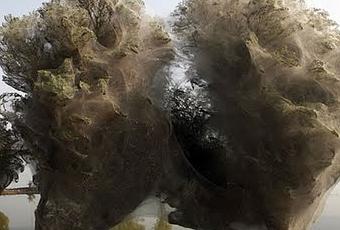 Las densas lluvias de principio de año, arrasaron parte del territorio de Pakistán y provocó cambios en la flora y la fauna. Millones de arañas abandonaron sus nidos y se alojaron en los árboles.
