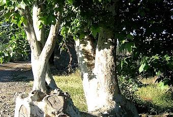 Los árboles, al igual que el resto de seres vivos, hacen todos los esfuerzos posibles por sobrevivir aun en las condiciones más extremas. Un buen ejemplo es el Platanero de Ripoll, un viejo ejemplar que siendo joven fue derribado, no se sabe si por la mano del hombre o por las fuerzas de la naturaleza. Algunas de sus raíces permanecieron lo bastante aferradas al suelo como para permitirle seguir viviendo. Hoy, tras varios años desde aquel suceso, el tronco permanece tumbado en el suelo y varias de sus ramas han tomado el relevo a la copa inicial, aparentando tratarse de varios ejemplares. Un curioso y espectacular árbol.