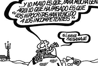 Los ciudadanos somos unos ingenuos: algunos lo sabemos, aunque nos apliquemos el refrán ese que dice "que sarna con gusto, no pica" (mentira, pica y mucho); la mayoría, lo ignora, y en algunos casos, voluntariamente. En algún momento esta situación debería cambiar para bien con necesarias reformas constitucionales de las que hablaremos otro día. De momento, y asumiendo como propia la idea de Rosa María Artal, ¿por qué no intentamos más intercambios como los que ella propone? Se admiten propuestas... ¡Ah!, y gracias, Forges, por haberme resuelto la parte gráfica... HArendt