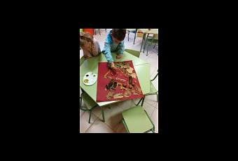 Al igual que hizo Arcimboldo, nosotros hemos creado un cuadro con productos muy otoñales (castañas, almendrucos, avellanas, hojas, bellotas…)