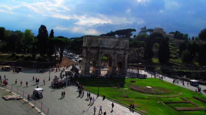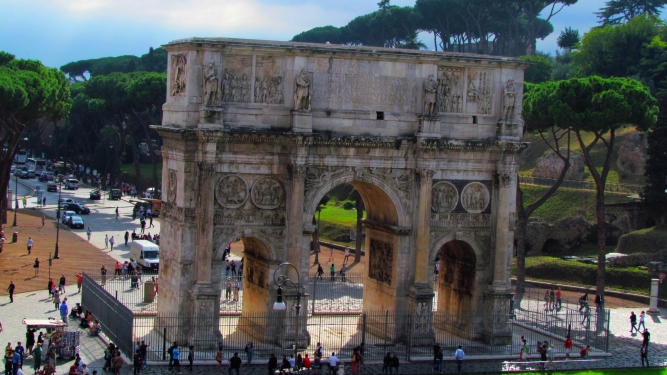 Arco del triunfo de Constantino. Es un arco del triunfo ubicado a un costado del coliseo.Es el más moderno y el más conocido de los arcos romanos.