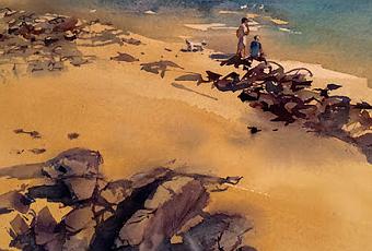 beach acuarela 24 x 24* papel de grabado Super Alfa