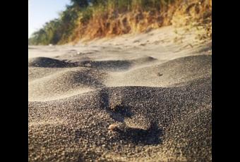 En las playas del Uruguay se encuentra con frecuencia una arena negra que deja los pies "sucios" si se camina descalzo. La arena se compone mayormente de pequeños trozos de cuarzo, pero si se acumulan otros minerales más densos y oscuros, tenemos esta otra apariencia como de marmolado negro.