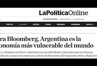 ¡Por fin estamos con un modelo que nos incorporó al mundo! ¡Y además salimos campeones!: la consultora Moody's Standars Poor's de calificación de riesgo nos ha colocado como la economía más vulnerable del mundo... Tal como se hace en el ranking FIFA, este organismo hace un ranking de economía más vulnerables del mundo y miren dónde nos ha dejado el mejor equipo de los ultimos 5000 años.En el ranking de vulnerabilidad de países emergentes que elabora Bloomberg a partir de los datos del FMI y el Banco Mundial, Argentina se llevó el primer lugar con los indicadores de 2019. De esta forma desplazó al segundo puesto a Turquía, quien hasta ahora encabezaba el podio. Por su parte Sudáfrica conservó el tercer lugar. Como consecuencia de esta debilidad de la economía argentina, las empresas se ven crecientemente afectadas, tal y como advirtieron este miércoles las calificadoras de deuda Moody's y Sandard and Poor's.