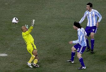 Me gusta el vasito en el que se toma el mate, el cine argentino, el corralito, Tierra de fuego, los asados, lo italiano de Buenos Aires, lo español de Córdoba... pero lo siento, no quería que pasara Argentina. Gran parte de ese pensamiento es culpa de Diego Armando Maradona, el peor ejemplo de deportista que ha existido en años. Con su estilo chulesco, prepotente, capaz de mandar al museo a Pelé o de faltar a Platiní, entrena a una selección llena de lujos que como tal merece gran admiración pero que por actitud deja mucho que desear. Para ejemplo un botón, un cámara despitadillo golpea involuntariamente a Heinze y...