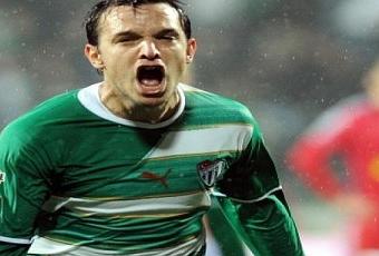Bursaspor. Batalla grita uno de sus goles en Turquía.