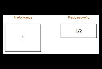 Asumamos que el area de los prados son como \(1\) y \( \frac{1}{2} \).