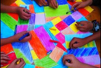 Los estudiantes del séptimo, pintaron la capa de crayones para realizar la técnica del esgrafiado.