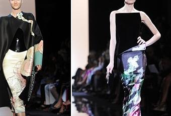 En esta colección han destacados las magníficas sedas estampadas, las chaquetas firma de la Casa, cuerpos sin mangas y originales complementos, en lo que ha sido un homenaje a Japón y su cultura y a sus diseños refinados y depurados.