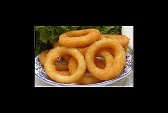 Batir enegicamente 1/2 cerveza bien fria (o tónica gaseosa) y 1 clara clara de huevo e ir incorporando 1 taza de harina, 1 cucharadita de pimenton, 1 cucharadita de sal, hasta lograr una masa lisa, colocar en heladera por 30 minutos.Partir 1 cebolla y despegar los aros , poner a remojar en leche por 30 minutos enla heladera, escurrir y secar sobre papel absorvente.Pasar cada aro por la mezcla anterior y freir en aceite caliente, dejar escurrir sobre papel absorvente.Servir como aperitivo o acompañamiento