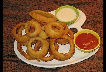 Elaboración:Lo primero que hacemos es cortar la cebolla de forma trasversal para sacar los aros, podéis escoger sólo los grandes o hacer como yo que seleccionó todos y así queda más vistoso el plato. Los ponéis en leche durante 15 minutos para que se les quite un poco el picor tan característico de la cebolla. El siguiente paso es preparar nuestro rebozado, en un plato colocamos los dos tipos de harina, una cucharadita de ajo en polvo, otra de sal y otra de pimienta, lo mezclamos todo, el siguiente bol será de los dos huevos batidos y por último el de pan rallado.