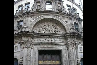 De acuerdo a ese sitio mencionado la fachada es de estilo neoplateresca de 115 metros de extensión, “diseñada en homenaje al renacimiento español, con esculturas inspiradas en el Convento de San Marcos, en León y en la Librería de la Catedral, en Santiago. La arcada de la esquina de la calle Florida, de 17 metros de altura, está inspirada en el Hospital de Santa Cruz de Toledo, construida en el siglo XVI.1 En la misma ochava, remata una cúpula circular con tejas coloniales españolas de color rojo ladrillo”