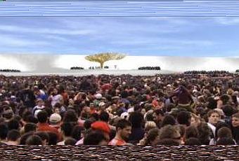 Vicens propone para la JMJ de Madrid grandes escenografías blancas, curvadas y mórbidas. Una imagen de vanguardia para una Iglesia que es joven y que no olvida nunca la tradición. El de 4 vientos promete ser un gran telón de fondo para los actos que se van a celebrar. 400 m de arquitectura + 2 millones de jóvenes de los 5 continentes + el Papa + video arte + música en directo… es una ecuación bastante interesante.