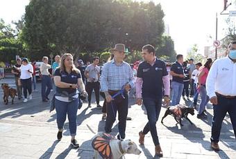 SLP. El ayuntamiento de la capital sigue dando pasos importantes en lo concerniente al grave problema de fauna doméstica en situación de abandono. El alcalde Enrique Galindo Ceballos encabezó la caminata por la adopción. En compañía de grupos animalistas interesados en el rescate, cuidado y adopción de mascotas promueven el programa #ConCorreaSi para crear conciencia principalmente en la prevención de accidentes.