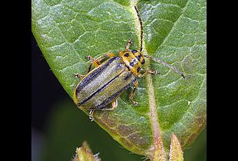 Para los que desconocen a este insecto, la «galeruca» es un pequeño escarabajo, que va desde los 5 a 8mm de longitud, que puede ser de color verde o amarillo.