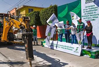 Un día después de presentar su Primer Informe de Resultados, el Alcalde de Soledad de Graciano Sánchez, Juan Manuel Navarro Muñiz, dio inicio a los trabajos de sustitución del drenaje sanitario en el fraccionamiento Villas de Foresta, atendiendo afectaciones derivadas del colapso de la red y los brotes de aguas residuales que impactan a las familias de la zona.
