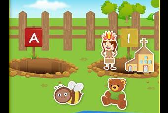 Descripción: Arrastra vocales es un juego de “drag and drop” (arrastrar y soltar) en el que al niño se le presenta un escenario con 9 objetos y 3 recipientes donde él deberá determinar con qué vocal comienza cada palabra propuesta y clasificarlas según ese criterio en los diferentes recipientes. El juego consta de 5 escenarios diferentes y cada uno de ellos trabaja 3 vocales.