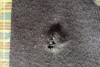Me preguntó si conocía a alguien que zurciera, porque le gusta mucho esa prenda y no quería desecharla.Como no encontramos a nadie, le sugerí unas coderas (a mi me hubieran gustado, como poco, escocesas, pero no es su estilo), y ella me pidió que fueran pequeñitas.Pensé que mejor las hacía yo, que no podía ser tan difícil.Lo primero, fue reparar el agujero, lo zurcí de aquella manera...