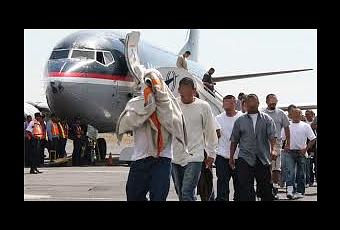 Llegaron escoltados por doce agentes federales estadounidenses que los entregaron a las autoridades de la Dirección General de Migración. Tomado de Almomento.net/Jhonny Trinidad. Editado en Neiba, Cabecera de la Provincia Bahoruco, República Dominicana. Contacto: [email protected]