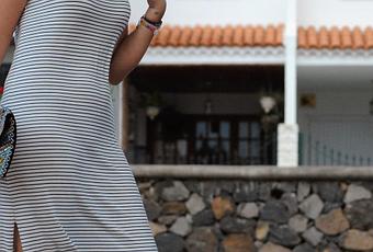 Para otra de nuestras sesiones en la calle, donde tanto nos reímos Nuria y yo intentando arreglar el mundo y haciendo fotos de locas que quedarán bajo llave hasta el final de los tiempos, decidí ponerme un vestido largo de rayas marineras que me compré en MANGO a 9,99€ y que sólo me había puesto una vez. No tuve en cuenta a la hora de comprarlo (sin probármelo) el tipo de rayas del vestido. Las verticales estilizan mucho la silueta, alargándola y haciéndola más delgada, mientras que las horizontales, ensanchan la figura y las curvas. Cuando llegué a casa y pensé en “mis curvas”, aposté que iría a devolverlo, pero la sorpresa fue que me gustó como queda y más ancha o menos ancha, me lo quedaré…. También influye la elección del grueso de la raya. Consejos vendo que para mí no tengo, así que si eres una chica bastante delgadita, y quieres marcar más las curvas, rayas horizontales y anchas. Si por el contrario prefieres estilizar más la figura, rayas verticales y finas.