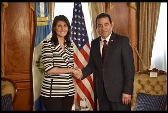 El premio a la obediencia se materializó en dádivas (todavía en promesa, por cierto), y en encargos para garantizar nuevos actos de abyección. Nikki Haley, embajadora de Estados Unidos ante la Organización de las Naciones Unidas, visitó a los gobernantes de Guatemala y Honduras, agradeciéndoles por haber apoyado en la Organización de las Naciones Unidas la decisión de Estados Unidos de reconocer a Jerusalén como capital de Israel. En Honduras, destacó además el activismo que, en la Organización de Estados Americanos, OEA, ha mantenido Juan Orlando Hernández contra el gobierno de Venezuela.