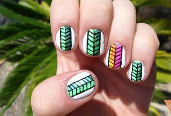 Para terminar, pinté las rayas en forma de triángulo que van sobre las lineas verdes. Top coat y listo :D
