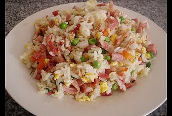 Ingredientes:Arroz basmati2 ZanahoriasJamón york (taquitos)Bacón (taquitos)1 lata de atún1 HuevoGuisantesPerejil2 Dientes de ajoSalAguaLocalización de los ingredientes:Los ingredientes lo podemos encontrar en cualquier supermercado.Elaboración:1. Ponemos una olla con abundante agua, sal y aceite. Cuando rompa a hervir le añadiremos el arroz basmati lo dejaremos que cueza unos 15 o 20 minutos. Añadiremos los guisantes al agua cuando al arroz le quede 5 minutos para terminar de cocerse.2. En una sartén echamos un chorrito de aceite de oliva y lo dejamos calentar, cuando esté caliente el aceite añadimos, el ajo (picado) y las zanahorias (cortada en pequeñas cuadraditos), cuando la zanahoria este blanditas añadimos el bacón.3. Cuando el bacón este hecho retiramos un poco de aceite de la sartén y añadimos el jamón york, el atún, la tortilla (en otra sartén haremos un tortillita con un huevo y la iremos haciendo trocito con la paleta).4. Colaremos el arroz con los guisantes y lo añadiremos a la sartén lo dejaremos rehogar unos minutos.