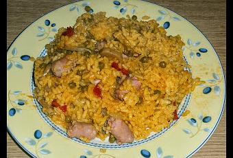 - 1/2 Kg de arroz- 8 salchichas frescas blancas
