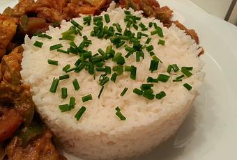 1 lata de leche de coco1 lata de agua caliente*1 lata de arroz basmati*sal*utilizamos la lata de la leche de coco para medir las cantidades