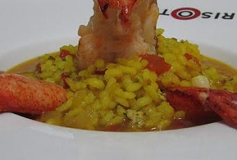 - Listo para emplatar. En un plato sopero ponemos la mitad del arroz con un poco del caldo y encima colocamos la cola y dos de las pinzas, lo tenemos listo para comer.