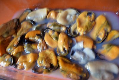 Lo primero que haremos será limpiar bien los mejillones por fuera, quitando todo resto de barbas en impurezas de la concha. Una vez bien limpios, ponemos una cacerola al fuego y echamos los mejillones. Tapa y espera a que se abran y suelten su propio jugo. Una vez abiertos, espera a que se enfríen un poco, quita el meollo y reserva con el caldo ( previamente colado ) que han soltado.