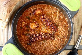 Esta receta de arroz caldoso con pulpo es perfecta para servir como plato único porque resulta muy saciante. Si quieres algo más para completar el menú, puedes aprovechar el pedido a O'Percebeiro y encargar unas ostras, para cocinarlas gratinadas al cava, o tomarte de primer plato un buey de mar preparado que te durará en la mesa el tiempo de cocción del arroz.