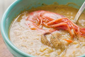 La receta la vi en Cuina per a llaminers. Esta es mi aportación a La recepta del 15. Arroz caldoso de marisco Ingredientes para 2 personas: