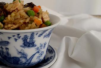 Vamos con lo que podríamos llamar una receta de aprovechamiento. Tanto el arroz tres delicias como el arroz frito o el cantonés, son recetas que parten de saltear el arroz que sobraba del día anterior con restos de fiambre o verduras de preparar otros platos. Hay quien atribuye su origen a los inmigrantes chinos en Estados Unidos que trabajaban en la construcción del ferrocarril. Dada la abundancia de huevos y arroz procedentes de las plantaciones, junto a la adaptación de ingredientes de la zona, dio como resultado los deliciosos arroces que hoy solemos comer en restaurantes chinos, adaptación de su gastronomía al gusto americano. Sea cual sea su origen, lo que está claro es que nos encanta.
